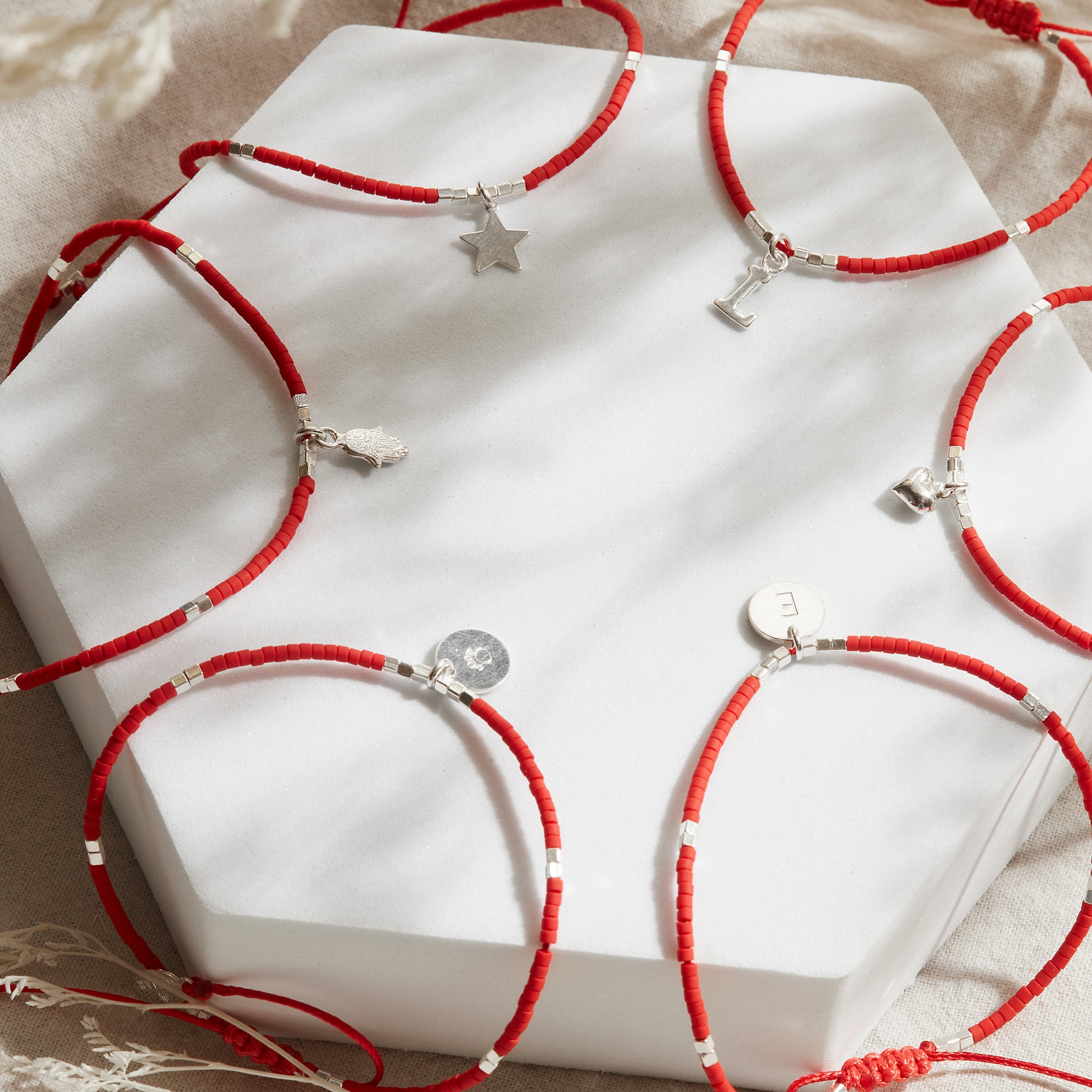 PULSERA ROJA AJUSTABLE INICIAL FORMA