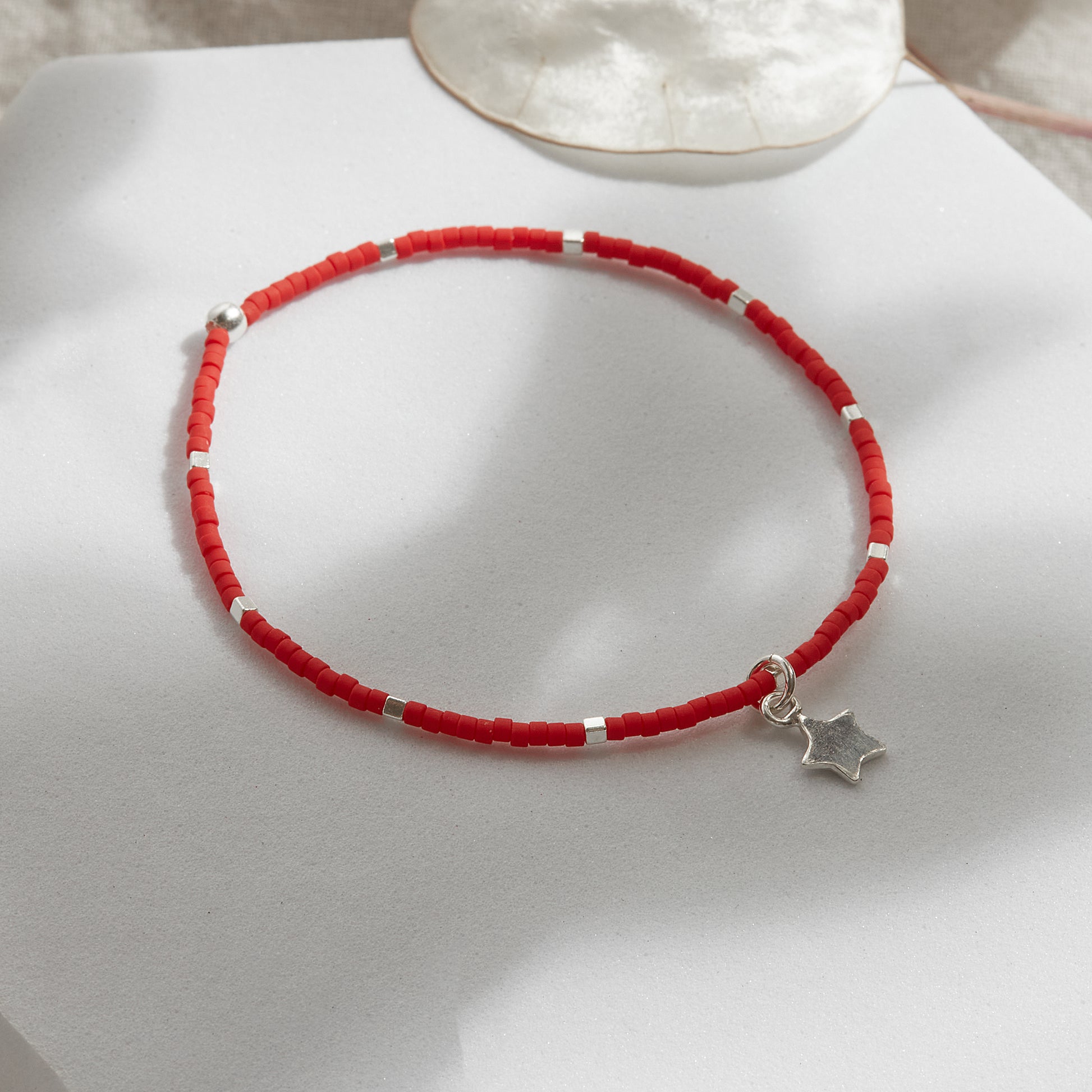 PULSERA ROJA ELASTICADA PLATA DIJE A ELECCIÓN